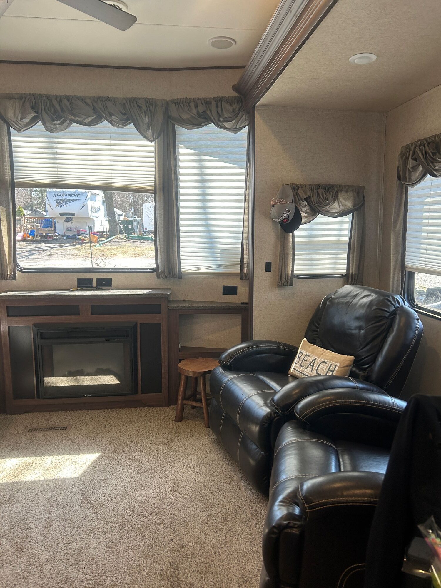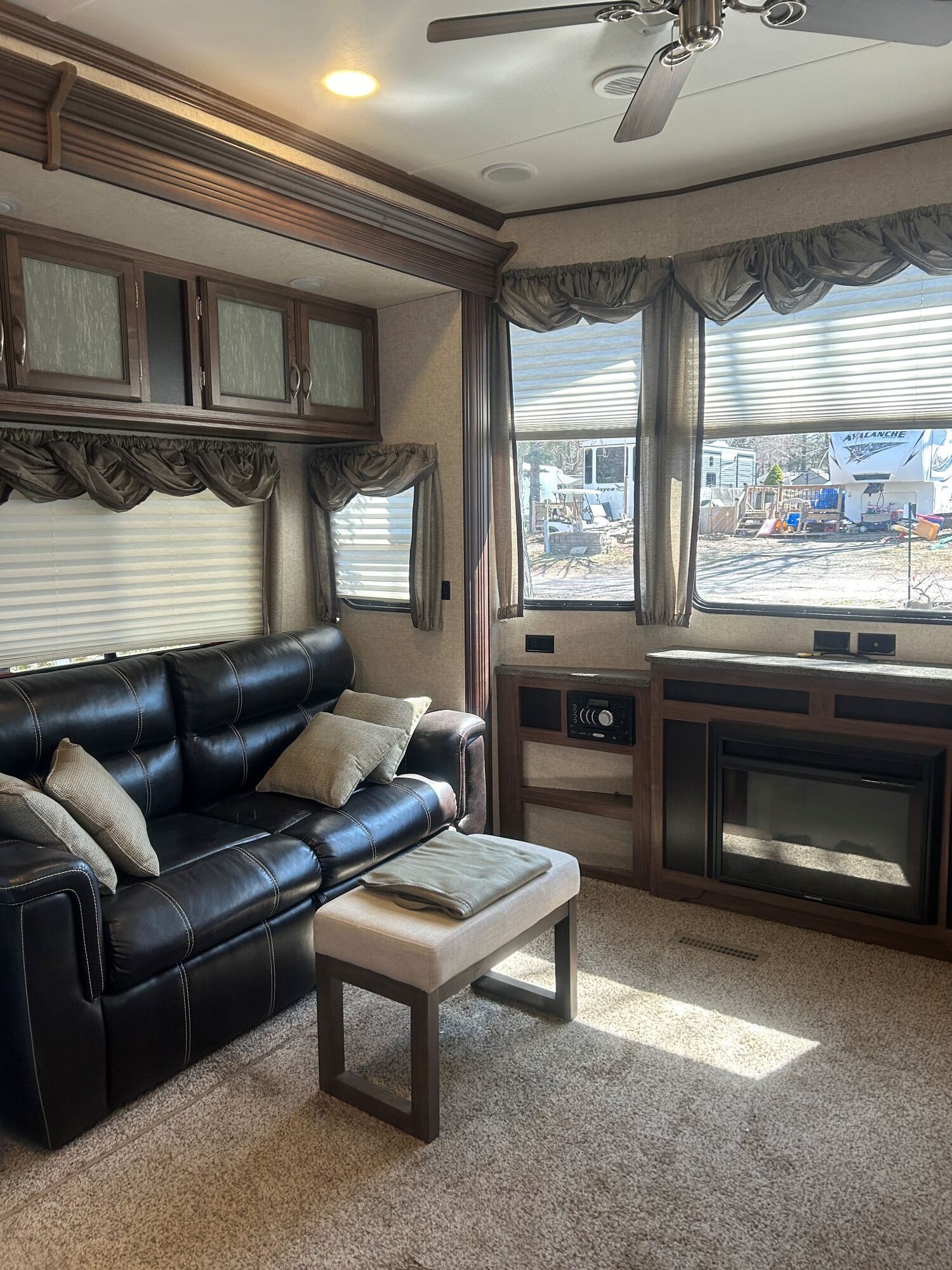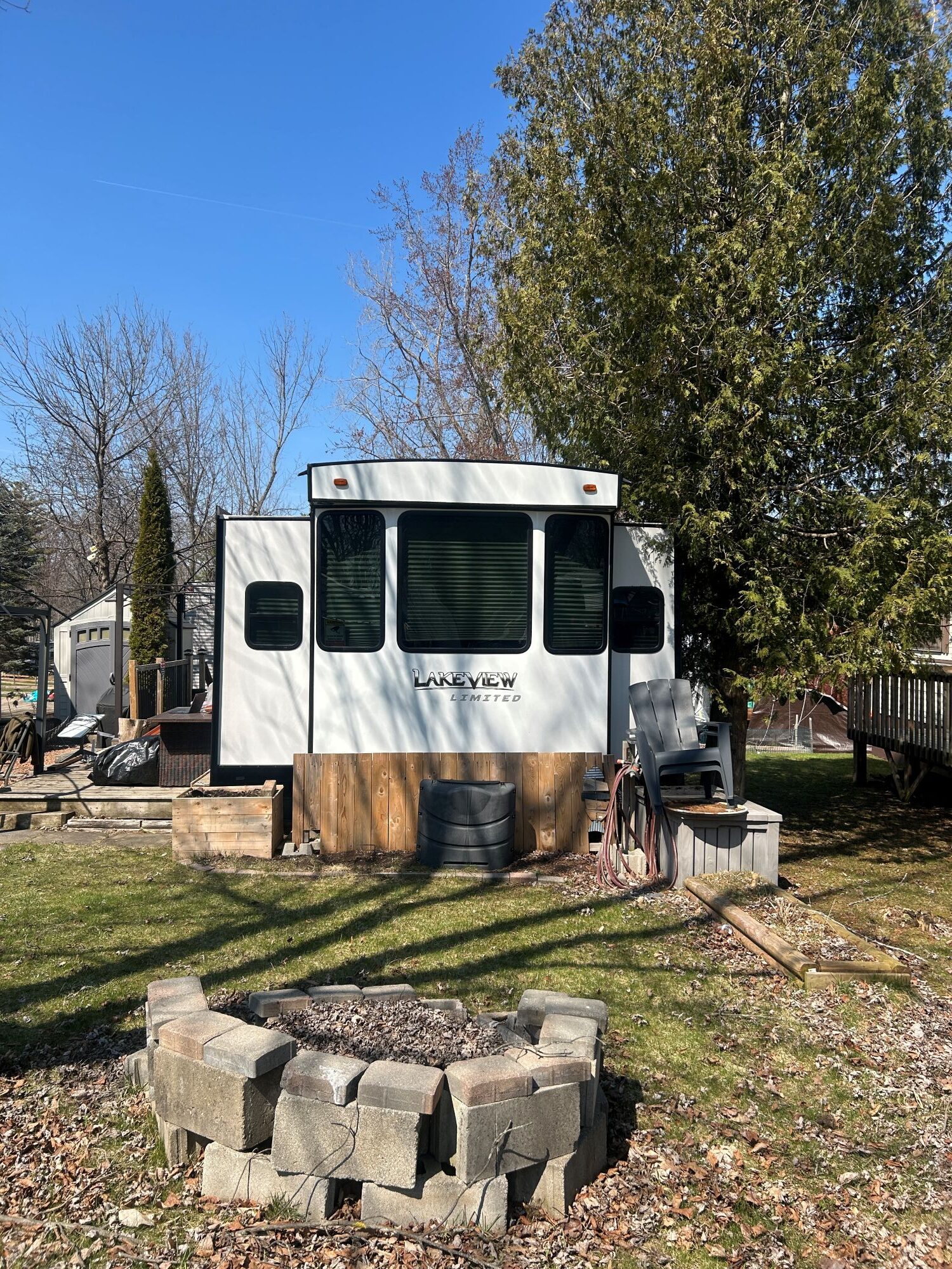 Welcome to Bloom Resorts Flamborough site P16 Escape to your perfect seasonal getaway! We are offering a fully loaded, turn-key lot featuring a 2017 Lakeview Breckenridge 41FBHL destination trailer. This unit is designed for comfort and space, featuring high 96” ceilings, a spacious front master bedroom, and a rear bunkhouse—perfect for families or hosting guests. This isn’t just a trailer; it’s a complete outdoor living setup. The sale includes over $15,000+ in upgrades and extras, making it ready for you to move in and enjoy on day one. Interior Highlights:Spacious Layout: Multiple slide-outs for a massive open-concept living area.Residential Kitchen: Full-size fridge, 4-burner stove, and plenty of prep space.Queen master bed, bunkhouse, and convertible sleeping options (Sleeps 6-8).Exterior & Lot Features (Included in Price):Massive 30’ x 10’ Deck: Perfect for entertaining and lounging.Dual Gazebos: Includes both a 10’ x 10’ and a 10’ x 12’ gazebo for shaded outdoor dining and living.Storage & Utility: Large storage shed and a deck box for all your gear.The Fun Stuff: 2 Kayaks included for lake days!Evening Ambience: Fire pit area, propane fire table, and a BBQ for summer grilling.Patio Set: 4-chair outdoor dining set included. -