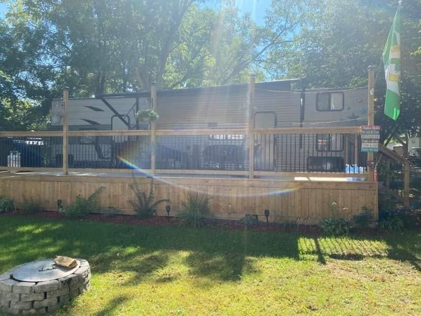 Welcome to Bloom Resorts Willow Lake site V06. This is a 2017 Forest River destination trailer in great condition, offering a spacious 38 ft layout with two bedrooms, including a second bedroom with bunk beds making it ideal for families or guests. The trailer sits on a very large lot with no back neighbours, providing privacy and a peaceful setting. It includes a 38 ft outdoor deck perfect for relaxing or entertaining. Well maintained and move-in ready, this destination trailer offers comfort, space, and an excellent outdoor living area.